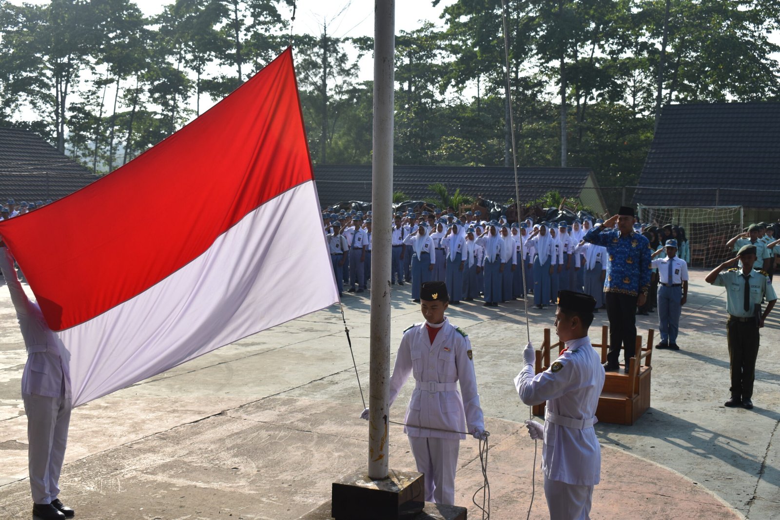 Upacara bendera berakhir dengan tertib dan penuh khidmat. Semangat nasionalisme tampak dari wajah para peserta didik yang bangga dapat ikut serta memperingati HUT ke-80 Republik Indonesia.